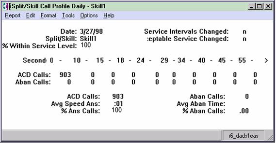 The Split/Skill Call Profile report shows the number of calls answered and abandoned in time increments that you administer. This report also displays your acceptable service level. Since this report shows you how long it takes for calls to be answered or abandoned, you can determine how long a caller is willing to wait for an agent before hanging up. With this information, you can determine the appropriate answering speed required to reduce abandoned calls.