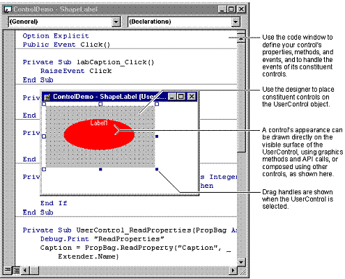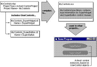 That is, whenever you place an instance of your ActiveX control on a form, a UserControl object is created, along with instances of any constituent controls you placed on the UserControl designer. These objects are encapsulated inside your control.