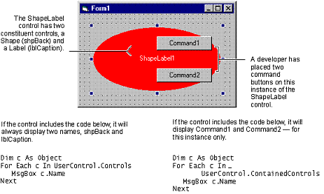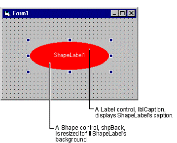 For example, the ShapeLabel control provided in the CtlPlus.vbg sample application, and discussed in the step by step procedures in “Creating an ActiveX Control,” uses a Shape control to provide its visual background and a Label control to display its caption.