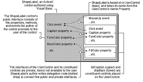 The UserControl object has an interface — that is, properties, methods, and events — of its own. The interface of your ActiveX control can delegate to the UserControl object’s interface members, which are hidden from the user of your control by encapsulation.