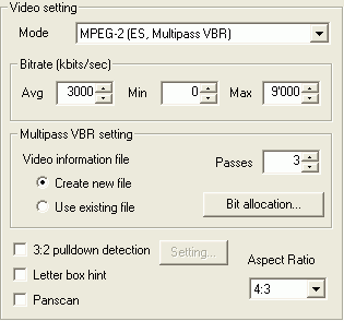 MPEG-2 (ES, Multipass VBR).
