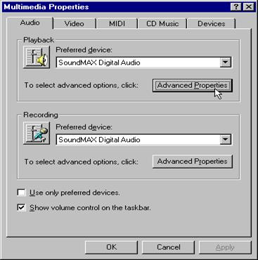 n Click the "Advance Properties" button of the "playback" under the label "Audio".