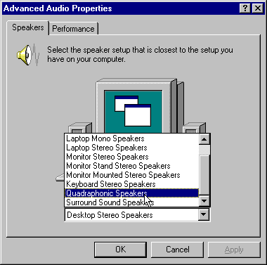 n Chose your speaker setup from the drop down menu under the label "Audio" on "Advance Audio Properties" window.