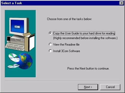 Select the first task, Copy the User Guide to your hard drive, and specify a directory into which the file will be expanded. By default, this directory is c:\3Com DMI.