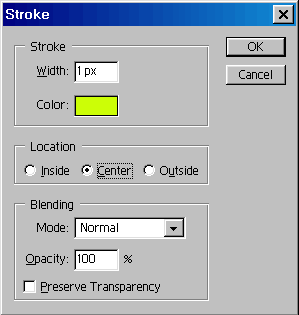 Now got to Edit>stroke, select your color and enter the settings as shown in the picture. |