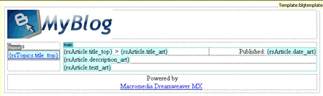Display the dynamic data from the recordset in your page. This time, you won't need a dynamic table for that, since there is only one item in the recordset to display-the article ID that the URL parameter passed.