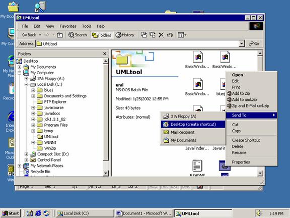 In the right window, right click on the UML icon and select Send to the Desktop (create a shortcut) to create a shortcut
