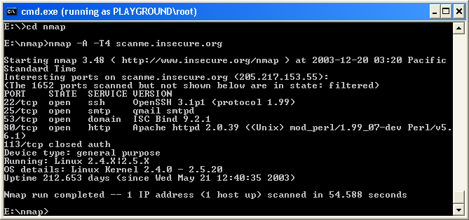 "Executing Nmap from a Windows command shell" is a screen shot showing