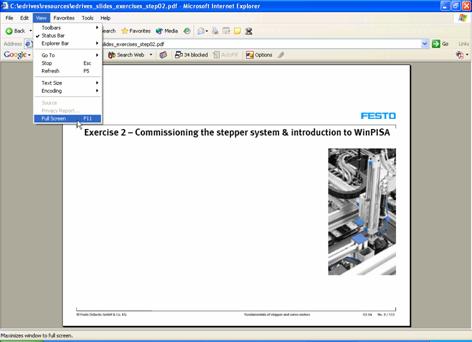 Note: When you select a slideshow from the CD (refer Fig. 3), the slide will open within your browser as shown in Fig. 4. The slides are pdf and to open them in full screen, go View > Full Screen as shown in Fig 4.