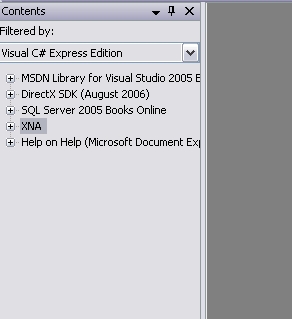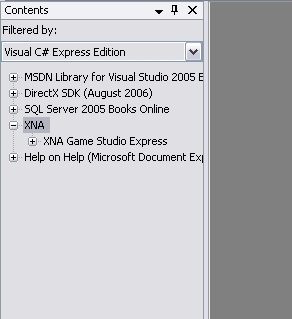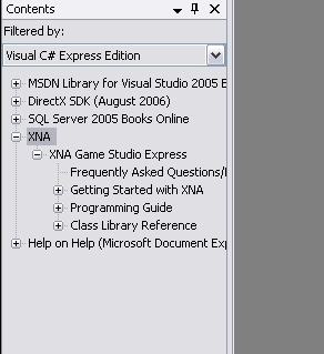 Now you will see the category "XNA Game Studio Express". Click on the "+" to expand the XNA Game Studio Express category.