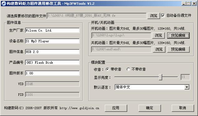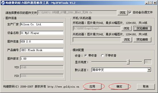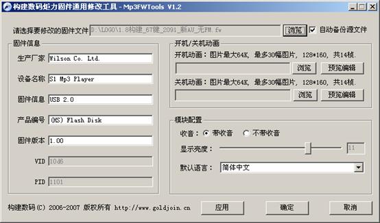Renames the names of production company, player and USB 434v2111e version, etc;