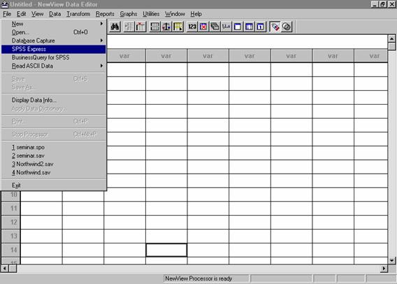 Access SPSS for Express under the File menu option of SPSS or NewView.