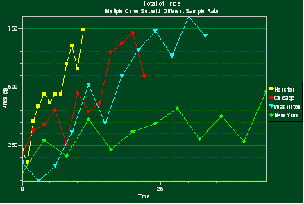 BYGraph could display both sampled data and random distributed data. Sample data are evenly distributed along x-axis at an equal interval; sampled data is defined by values at each sample point and sample interval as well as starting coordinate. Random data must be specified by giving both x and y values at each point of the curve. BYGraph could be used to display both sampled and random data in the same graph. BYGraph could even display sampled data curves, which don't have the same starting points and/or same sampling interval.