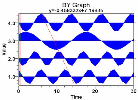 BYGraph supports multiple curves. Multiple curves could be displayed in six different modes. The most common one is normal mode that has the same vertical axis scale. But when the difference between curves' amplitudes is big, normalization mode should be used, since curves are stretched to the same graph area. Curves could be displayed in two vertical axes so some curves use left vertical axis and some right axis. All curves could be displayed in their own panel with their own scale.