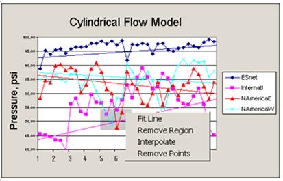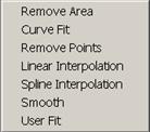 Push left button down and drag mouse on the graph to pick some points, after released the button, there is a region displayed on the graph. Within the region user created, click right button, from pop-up menu user can create a fitting line delete points, smooth, or just remove region.
