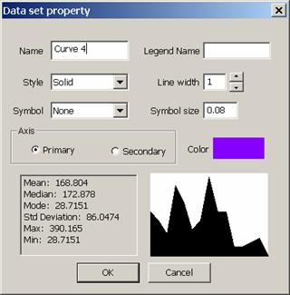 This property dialog box is used for users to modify properties for each curve. Move mouse on the curve which users want to edit, and double click to bring up curve property dialog.
