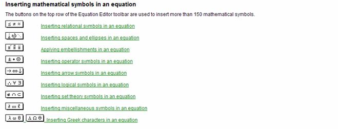 choose from more than 150 mathematical symbols. From the bottom row, you