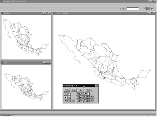 The large View on the right is the TO***ROAM View. This view is provide for easy zooming and panning the two view. Zoom operations performed on the TO ROAM view does not affect it, but it does affect the TO View located in the bottom left hand corner. Thus if we use the zoom in tool and drag a box in the ROAM View then the zoom takes place in the TO View. The top left view is the FROM VIEW which contains the image theme you would like to warp.