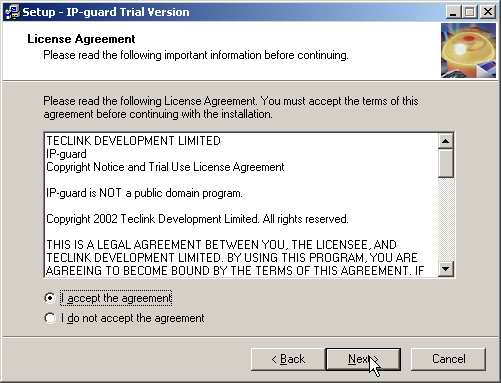 The installation of IP-guard Agent is similar to the installation of IP-guard Console and Server. It only skips step 4, 5, 6 of IP-guard Console and Server installation. Please run IPguardAgent.exe to start the installation.