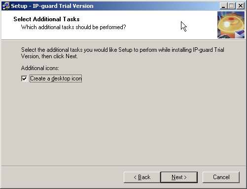 Tick the check box in the following screen if you want to create a desktop icon for IP-guard Console.