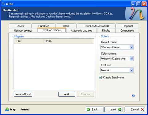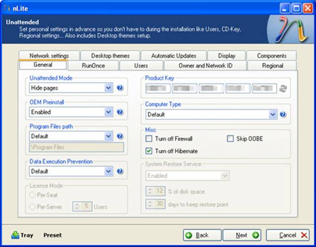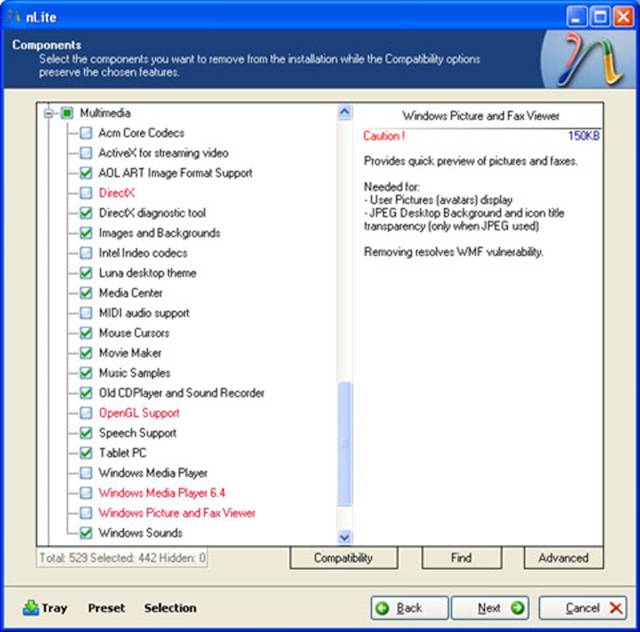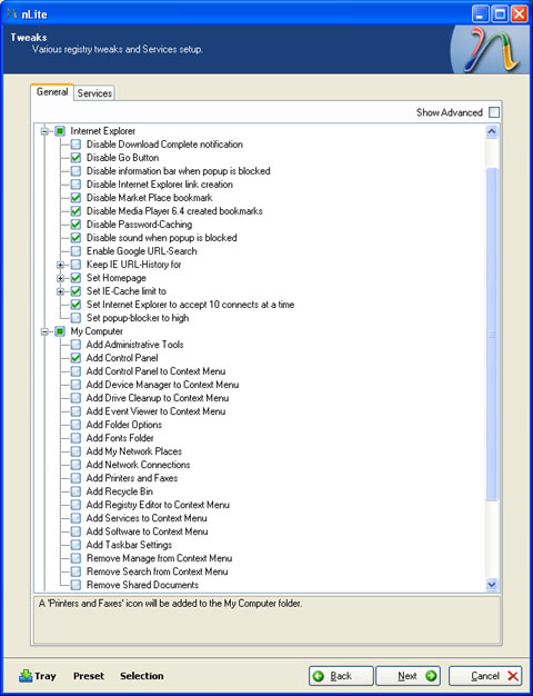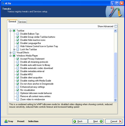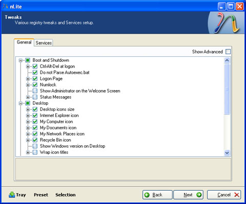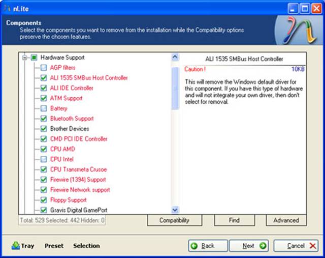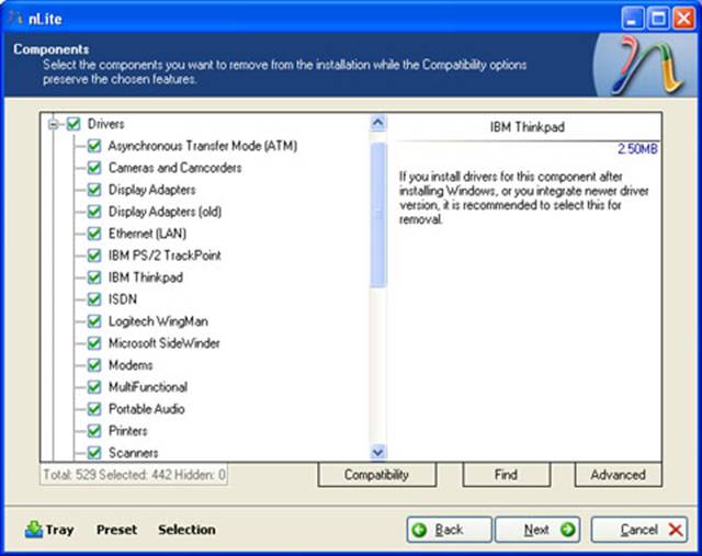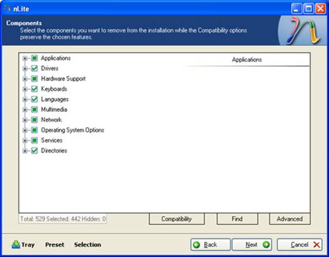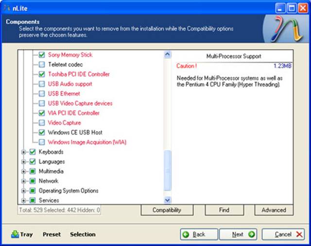Running through nLite is pretty simple, but takes quite a bit of time. As a result, the instructions in this section will be pretty minimal... just pay attention to what I've done in nLite and clone all of my settings. If you see some items that I've removed that you are sure you want, like Bluetooth Support, feel free to uncheck those items. Beyond what you are 100% certain of, don't change anything. nLite allows you to easily break major features of Windows XP (like networking), so it's important that you not edit what you're not 100% sure of.