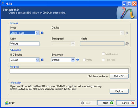 You can now create an ISO image of the install CD. You do have the option of burning your newly ripped nLite install right to a CD if you have a burner, but I recommend creating an ISO so you can back that up somewhere, and burn it with your CD burning app of choice.