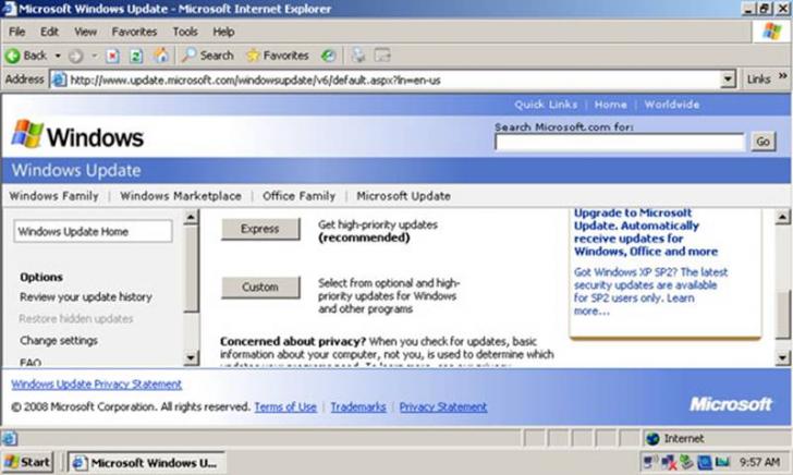 Connect to a network, be it wireless or wired, and use Internet Explorer to navigate to https://windowsupdate.microsoft.com. Windows Update will tell you that it found some updates and give you the option of doing an Express install or a Custom install. Click the Custom button.