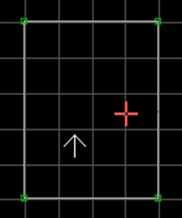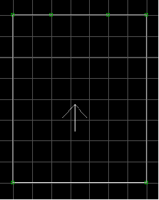 Now you're ready to draw the very first sector in your level. To get into wall drawing mode press the Space key and a message will appear in the status bar, telling us that you are in sector drawing mode. A white wall will go from the closest point of the grid where you pressed Space up to the current mouse cursor position. Move the mouse a bith north (up) and then press Space again to place a vertex there. Move the mouse a bit east, press Space, move it south, press Space again and then move the mouse cursor on top of the first point. Press Space once again to close the sector and to end sector drawing mode. If you missed the first point or generally if you think that you need to place a vertex at a different place without having to quit the whole sector drawing mode use the Backspace key to delete the last inserted vertex, unanchoring the last wall drawn. This is also referred to as "backtracking". You can press Backspace repeatedly to delete one point after another. When you delete the first point drawn you will exit sector drawing mode without making any changes to your map. After having successfully completed drawing the first sector it will look similar to the one seen in figure 2.