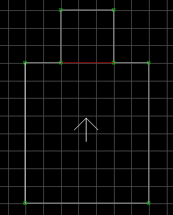 Since I have mentioned them before I should explain how to create adjactent sectors. An adjactent sector is any sector that shares at least one wall with another sector. Use the rectangular sector you built at first and insert two new points at the northern wall. Use the Insert key twice on this wall to split the wall twice. You may find it necessary to change the grid size with the G key in order to place the points at the desired locations, like in figure 3. You can use the A and Z key to zoom in or out your view in 2D mode. Use the Z key to zoom out if you want to get an overview of your map. Use the A key to zoom in if you need to make detailed adjustments. These keys do not modify the size of a level, they simply change the "distance" from which you view the map.