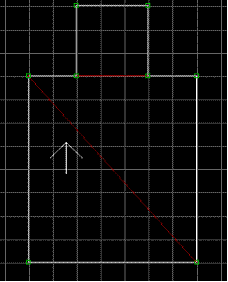 Sometimes it is better to split an existing sector into two rather than adding another adjactent sector. Splitting a sector is a very simple operation. All you do is draw a wall from one vertex of the sector to another one. The wall may not cross other sectors! Use the existing start sector and split the larger sector by pressing Space while your mouse cursor is on top of the vertex in the lower right corner and then move the cursor to the vertex in the upper left corner and press Space again. The wall will turn red immediately - you have just split this sector into two. Take a look at the example in figure 6.