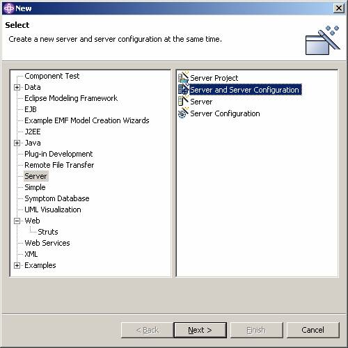 Click File->new->other->Server->Server and server configuration