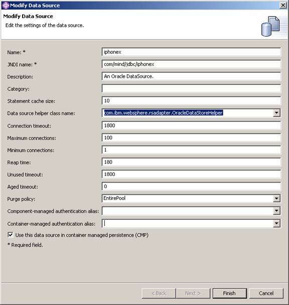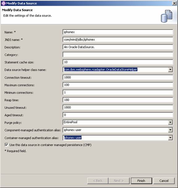 Return to the modify data source dialog and change the authentication alias to the one you just created: