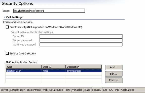 Component - managed authentication alias/ Component - managed authentication alias should be the DB user (e.g. mind/mind) this user is defined in the JAAS tab (see below).