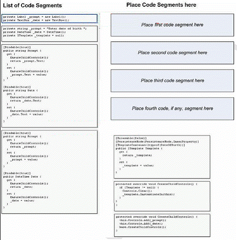 Which four code segments should use? (Select four. Each is a part of the solution.)