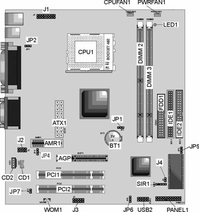 This mainboard uses the VIA VT8363 chipset which provides a 4X AGP slot for highly graphics display, CPU Plug & Play through firmware. The mainboard has a built-in AC97 Codec, provides an AMR (Audio Modem Riser) slot to support Audio and Modem application, and has a built-in 10BaseT/100BaseTX Network Interface. In addition, the mainboard has an extended set of ATX I/O Ports including PS/2 keyboard and mouse ports, two USB ports, an RJ-45 LAN port, a parallel port, and two serial ports. Two 19119k102t extra USB ports can be added using the Extended USB Module that connects to the mainboard.
