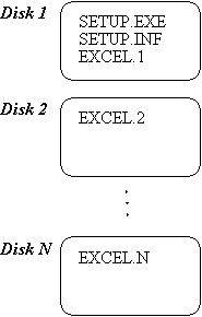 SETUP.EXE is the setup program, and SETUP.INF is a file generated by MakeCAB which guides the operation of the setup program (which files are needed for which options, and on which disk and in which cabinet file a file is contained). All of the remaining product files are contained in the cabinet files EXCEL.1 through EXCEL.N (N might be 7, for example).
