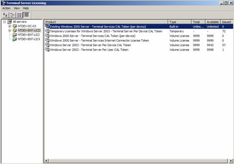 The Terminal Server Licensing tool provides for the administration of the license server. When started, it displays a list of all discoverable license servers (see Figure 2) and can be used to administer any of those servers from a single location.