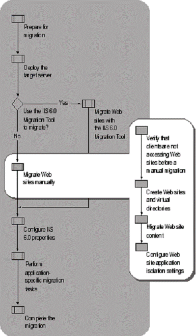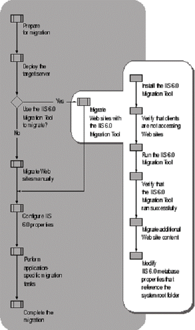 In some cases, you can simplify the Web site migration process by using the IIS 6.0 Migration Tool. For more information about using the IIS 6.0 Migration Tool, see "Preparing for Migration" later in this chapter.
