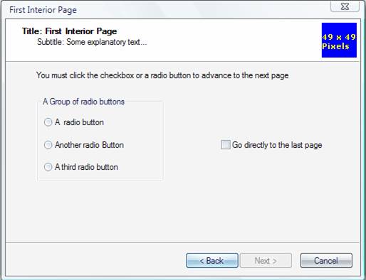 LTEXT "You must click the checkbox or a radio button to advance to the next page",
