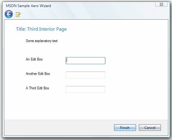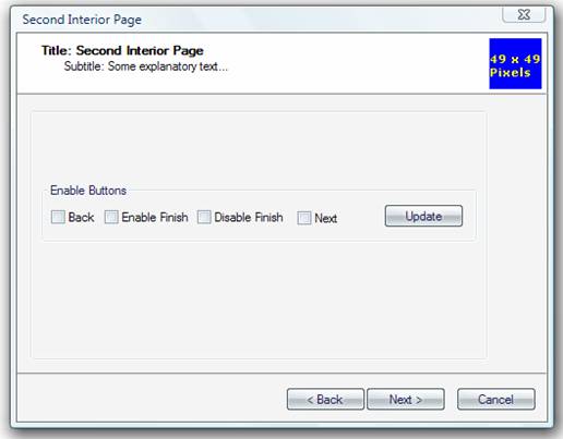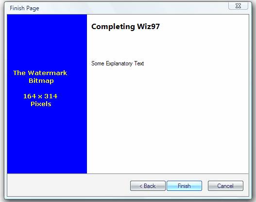 Compile the wizard, and you'll notice that we end on the third interior page (notice the "Finish" Button on the third page).