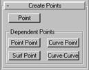 point A point in three-space, created when you create a Point Curve or Point Surface, or when you create an individual point sub-object. Points that are part of a Point Curve or Point Surface are constrained to lie on the curve or surface. Points behave somewhat like vertices for 3DS MAX spline objects, but their behavior is not identical and they are a distinct object type.