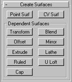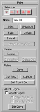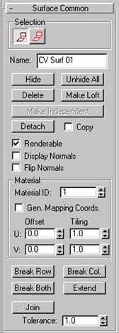 This section describes the controls that are common to Point and CV surfaces. A rollout labeled Surface Common contains the surface sub-object controls for NURBS surfaces.