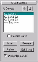 Converts the surface sub-object to a (dependent) U Loft surface. Can also change the dimension used to construct a U Loft surface.