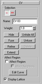 [NOTE: Some advanced features for NURBS modeling, such as trimming, are under development at present and will become available as a separate feature set after the shipment of 3DS MAX R2.0.]