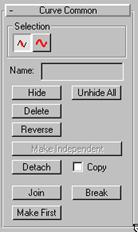 Two modifiers, NCurve Sel and NSurf Sel, let you place a NURBS sub-object selection on the modifier stack. This lets you modify only the selected sub-objects. Also, selected curve sub-objects are Shape objects that you can use as paths and motion trajectories.
