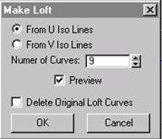 Delete Original Loft Curves: This is enabled only if the surface was a U Loft to begin with. If set, Make Loft deletes the original loft curves when you click OK. If cleared, the original curves remain where they are. Default = cleared.