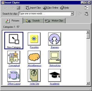 If you often use your own pictures, sounds, or motion clips in your documents, you can store and locate them quickly by adding them to the Clip Gallery. You can add pictures in any format supported by graphics filters in Word 2000. You can also add your own sound and motion clips.