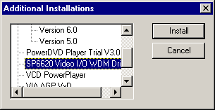 Find ¡§SP6620 Video I/O WDM Drivers¡¨ then click ¡§Install¡¨