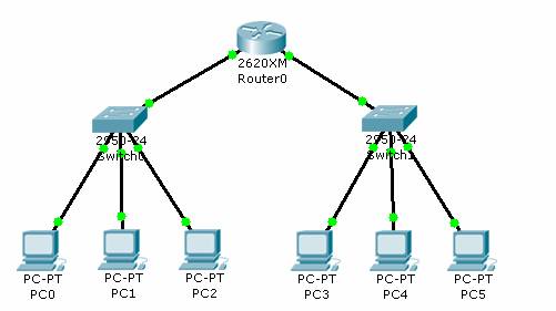 This topology represents a simple network. A router needs to be added and configured to allow communication between the two switches.