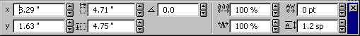 These fields show position and size of text and line spacing and allow you to make precise adjustments. |
